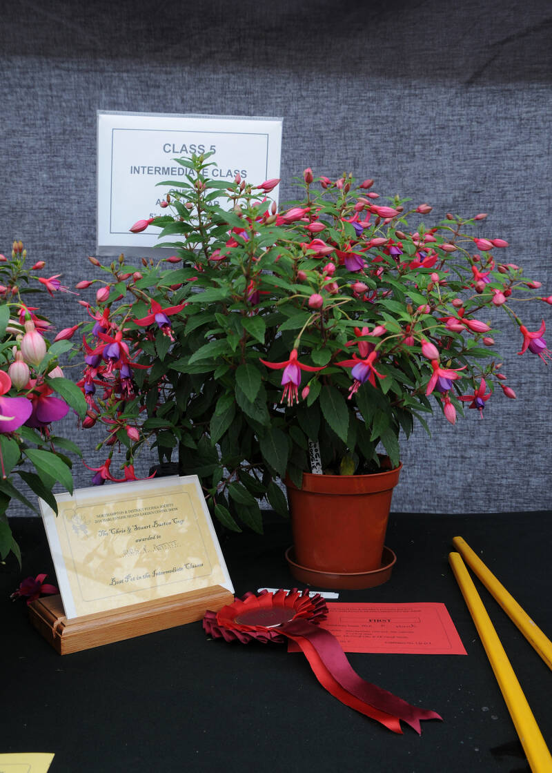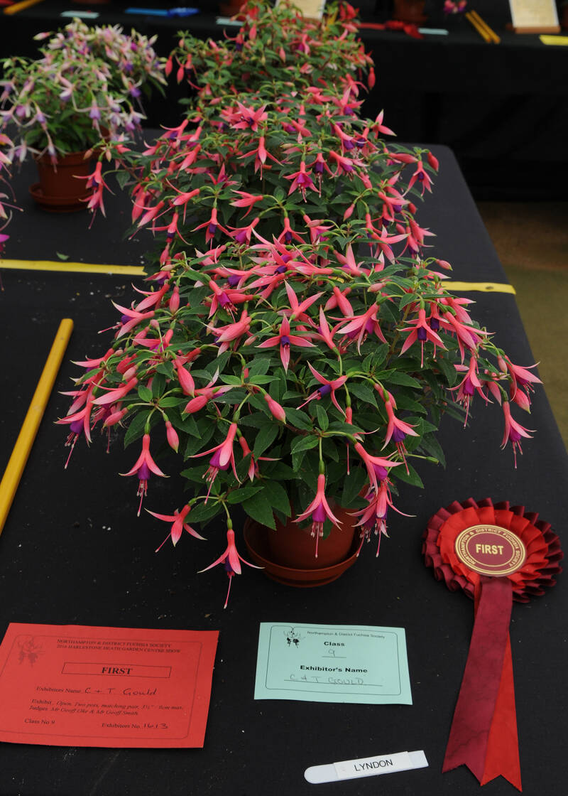The Fuchsia Show was held at the Harlestone Heath Garden Centre on Saturday and Sunday, 6th and 7th August. We had 24 members making 218 entries for the show which resulted in 269 pots and baskets being exhibited. This year the number of entries was up on last year and this was mainly due to key exhibitors having placed more entries. We also had entries in every class which was great.
