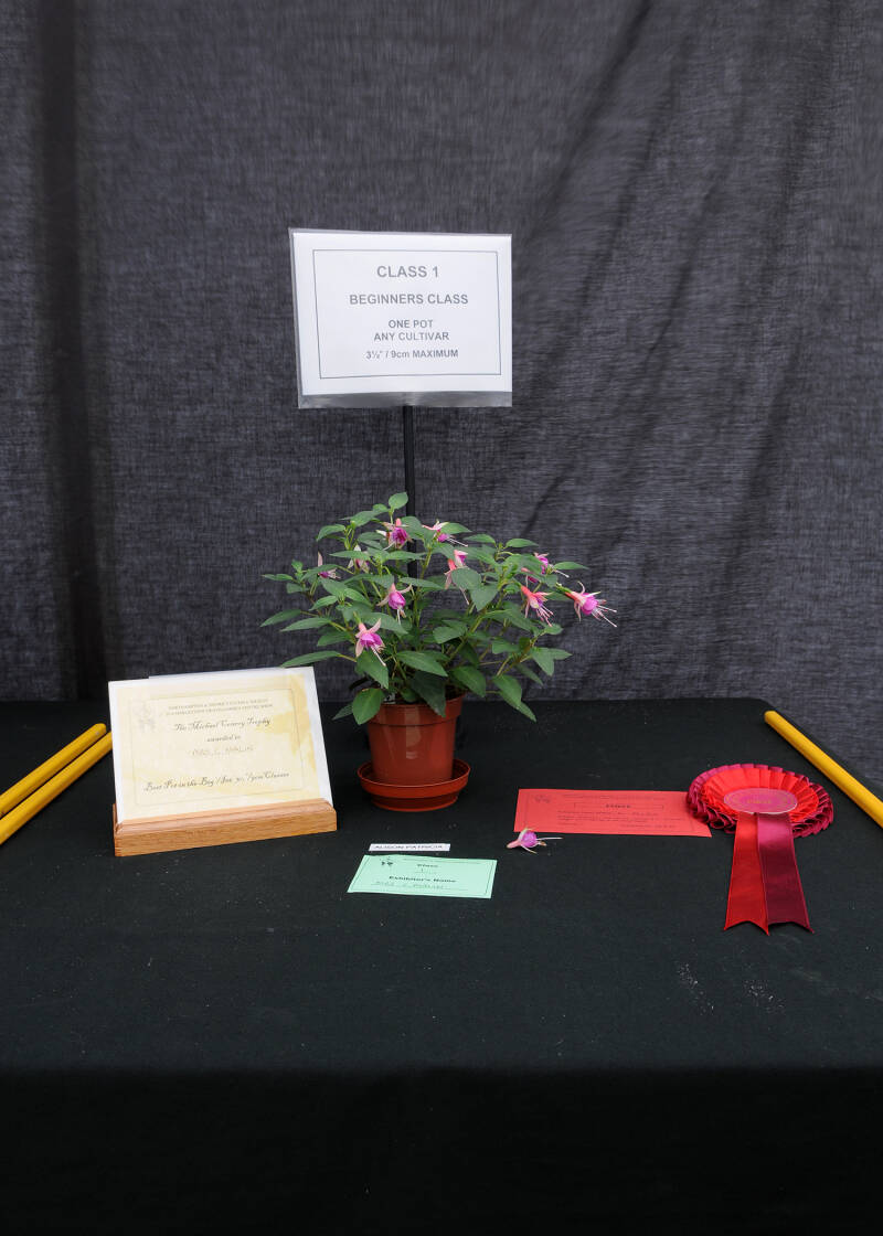 | Harris Cup | Runner up to best pot or exhibit in show (class 12) | Clive & Tracey Gould |
