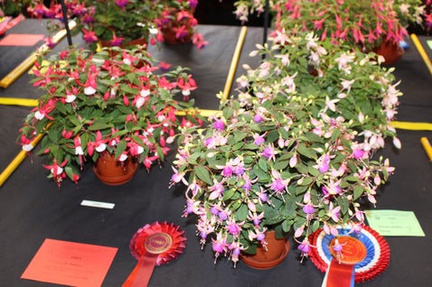 Class 33 Open. 6 Fuchsia Flowers. Different cultivars. 4 entries.