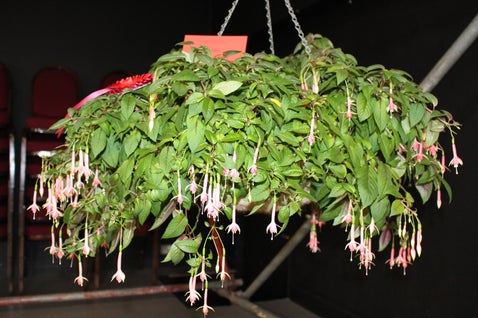 Class 35 Open. An Arrangement of Fuchsia Flowers in a 9"/23cm dia. Glass Bowl. 1entry.